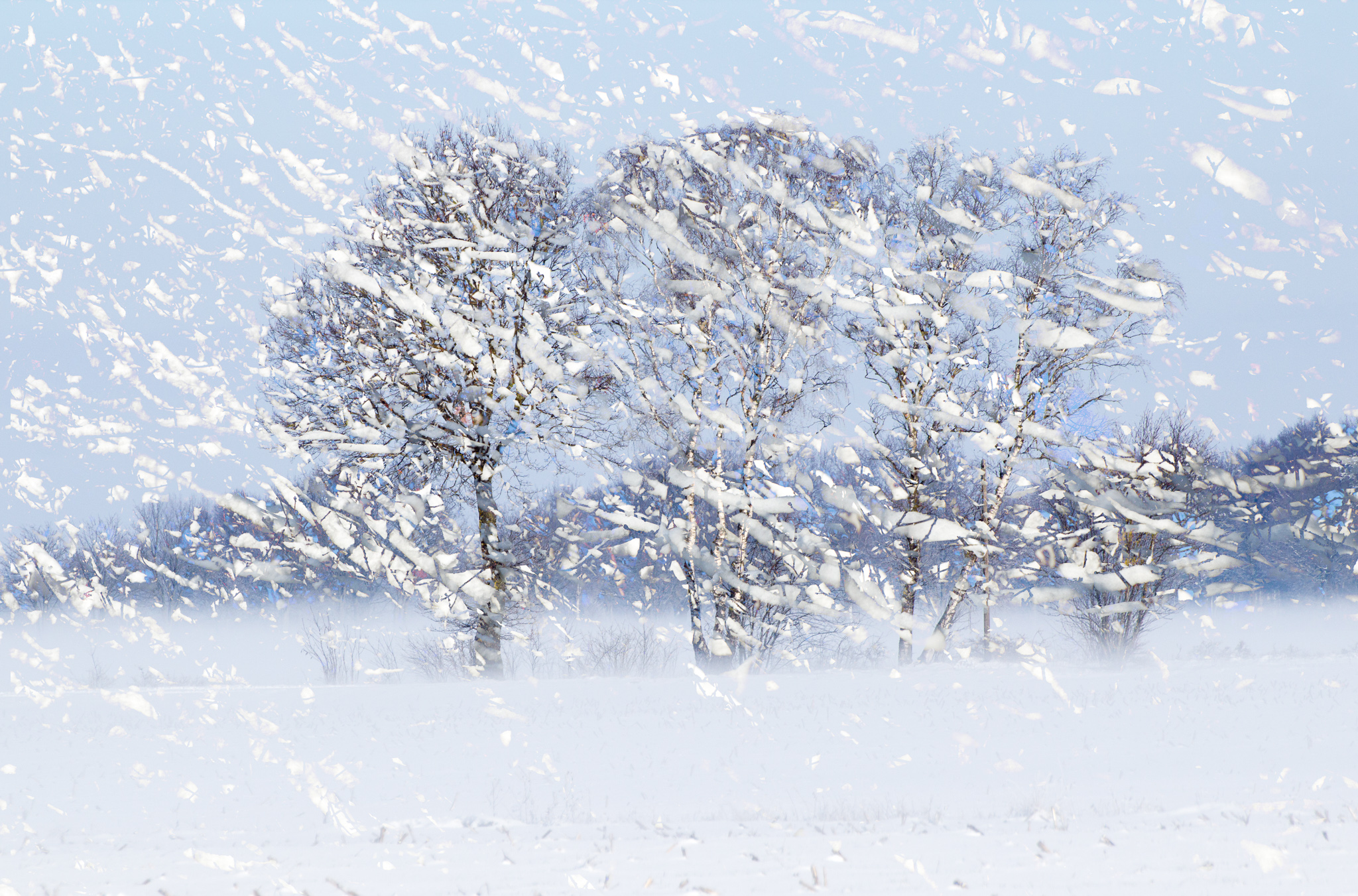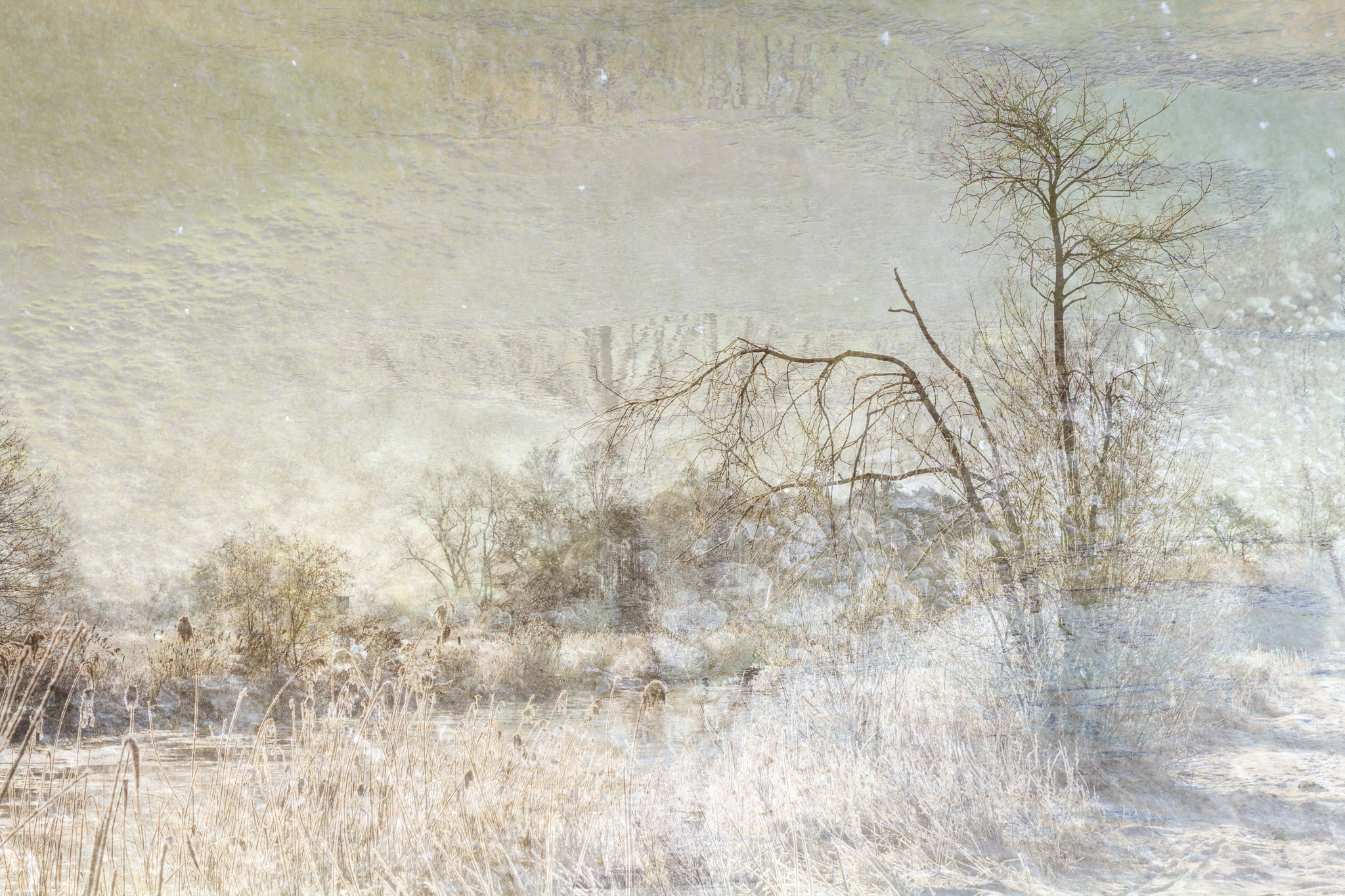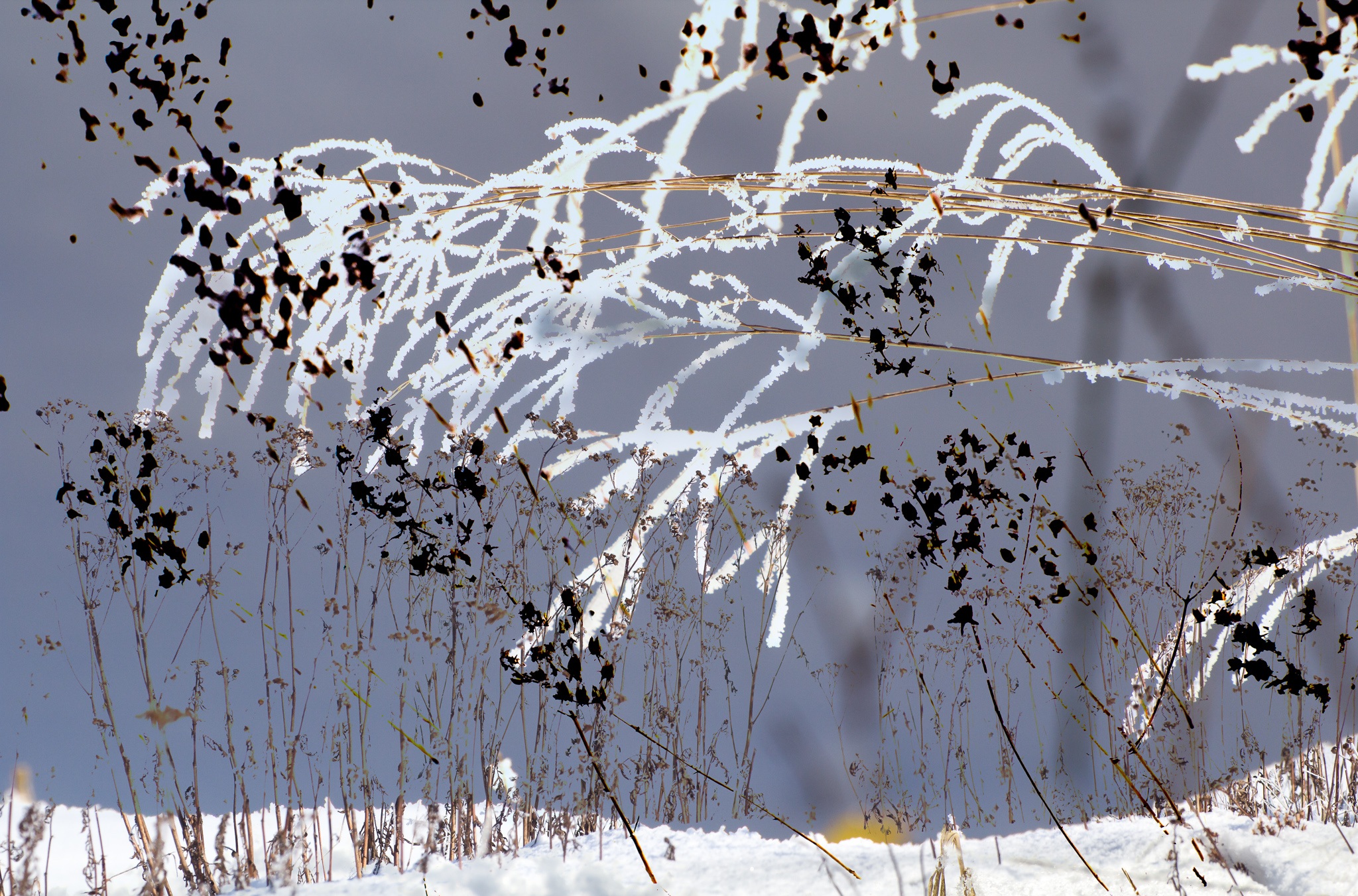 Knirschender Frost, tanzende Flocken, weißes Tuch, feuchtgrauer Nebel.