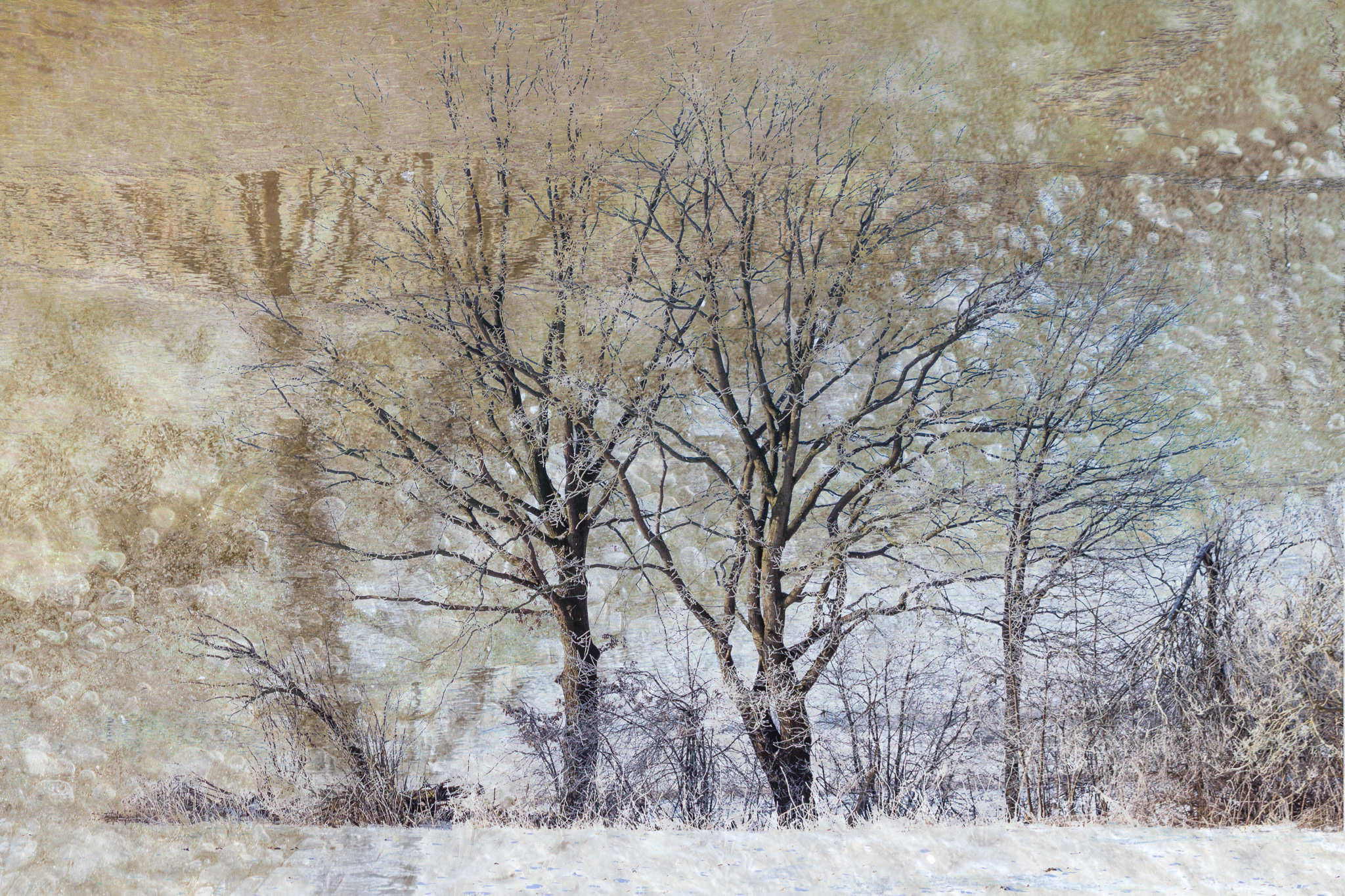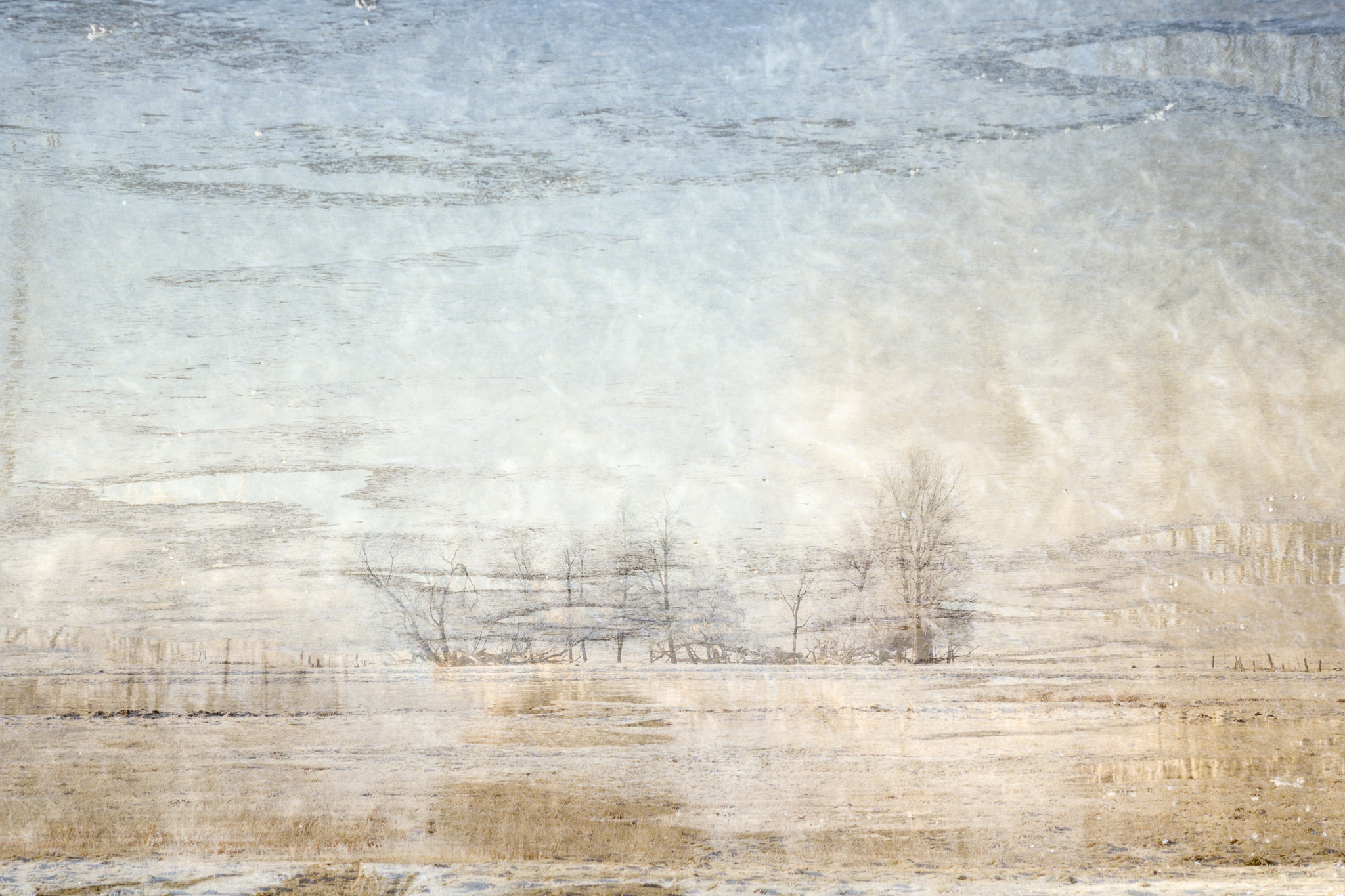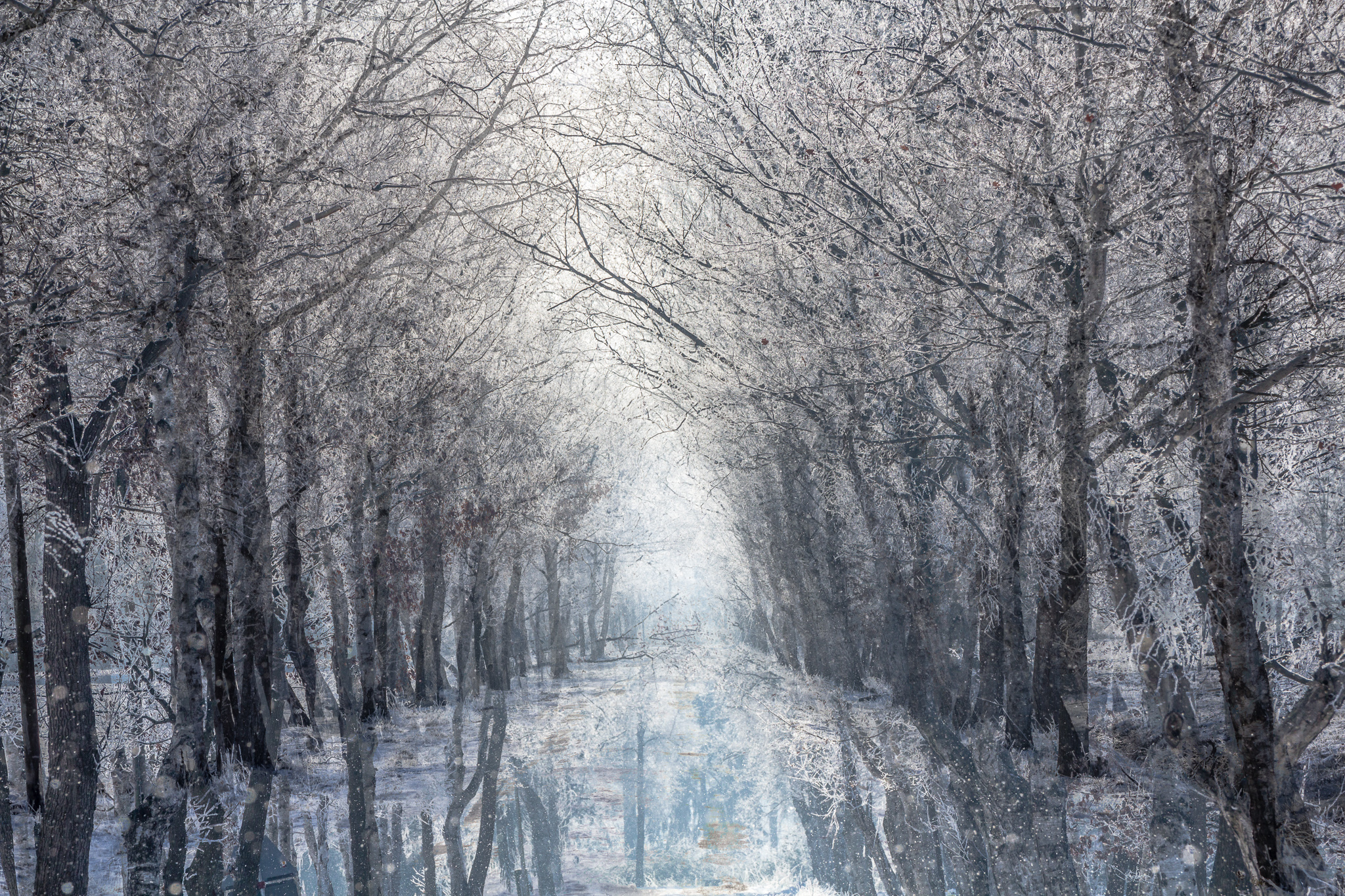 Knirschender Frost, tanzende Flocken, weißes Tuch, feuchtgrauer Nebel.